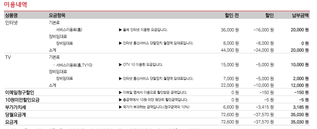 (어머니께서 핸드폰을 KT를 쓰셔서 그걸로 묶어서 할인이 들어가지 않았나 추측해봅니다....)