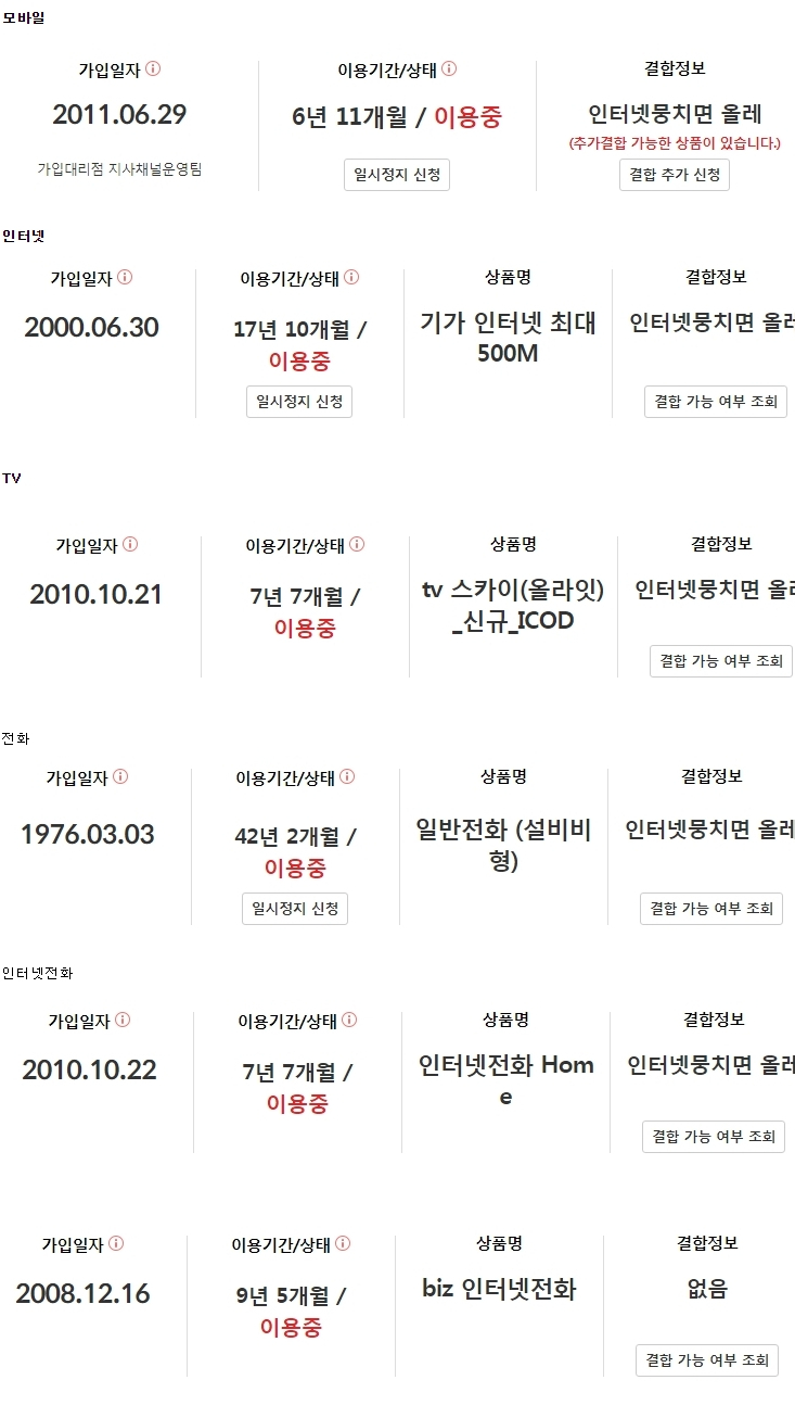 추가로 가족 KT회선 3가지가있는데 따로 할인은 받고있지 않습니다. 뭉치면 올레 옛날 할인이 계속 되고있는줄알았는데 그것도 기간이끝났는지 할인되는 내역은 하나도 없습니다.