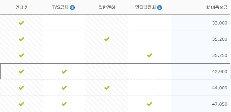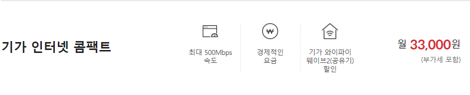 KT인터넷 홈페이지에서 보니 33000원이란 가격의 인터넷 상품이 있고