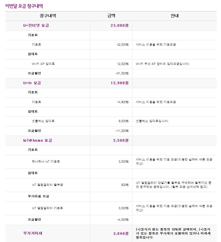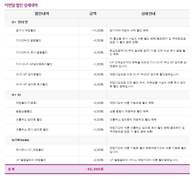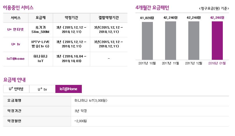 HOME IOT도 3년약정에 가입되어있더라구요. 그리고 요금상황을 살펴보니 약정할인, 기본료 할인 등으로 퉁치는 식이더라고요.
