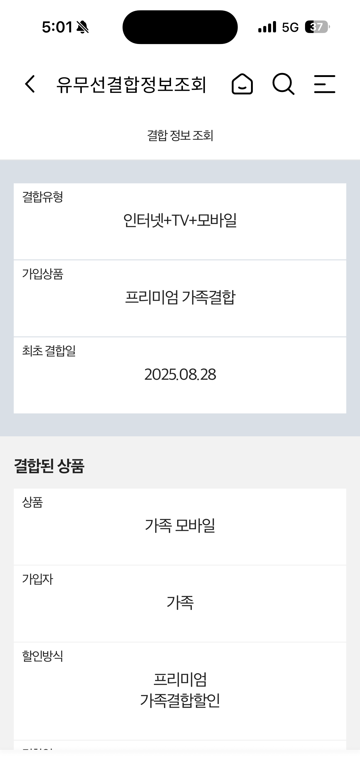 지난 7월  백메가 상담 이후 kt 인터넷 변경 및 통신사 변경 하여 가족 결합을 하였습니다.