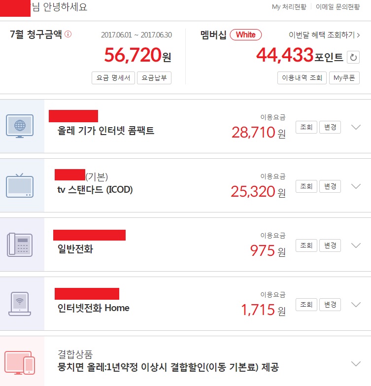 가입년수도 올리시고 + 결합할인 혜택 (인터넷 30% 할인)도 받고자 하시는군요?