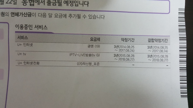 현재 u플러스 사용중이구요 위 사진과 같이 인터넷+티비+070저화+ 핸드폰 1회선 이 결합으로 묶여있습니다.