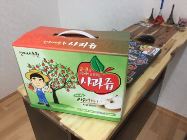 그래서 완성된 테이블 첫 신고식을 사과즙으로 개시했습니다 ㅎㅎ