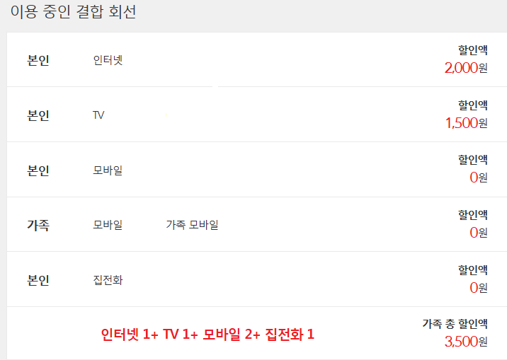 지금 현재 TV , 인터넷 , 모바일 , 유선전화 등을 KT로 이용중인데요