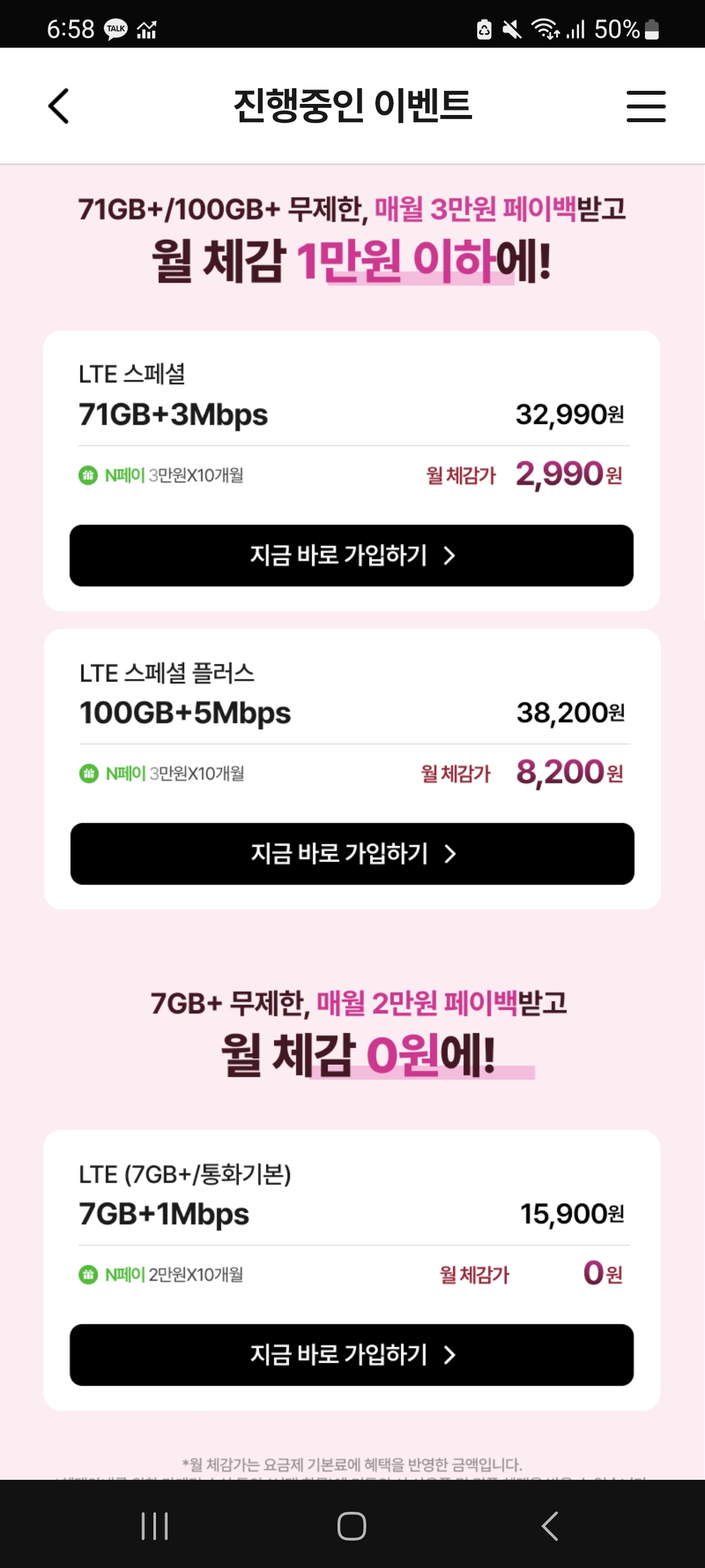 그나마 가장 저렴한 요금제인 듯한데요~~;;;