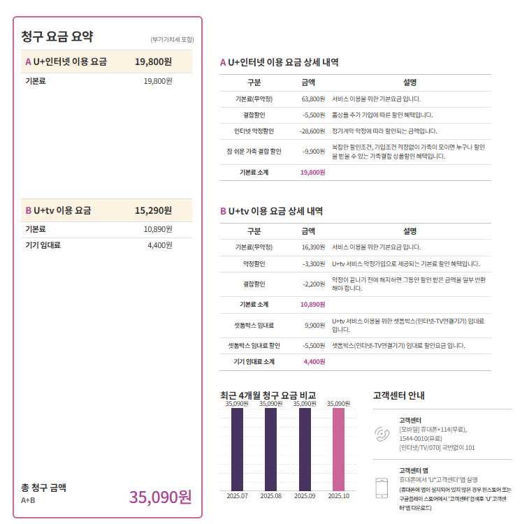 현재는 LG휴대폰을 묶어 참쉬운가족결합으로 월 9,900원씩 할인받고 계시다보니 요금이 엄청 저렴한 편인데요~