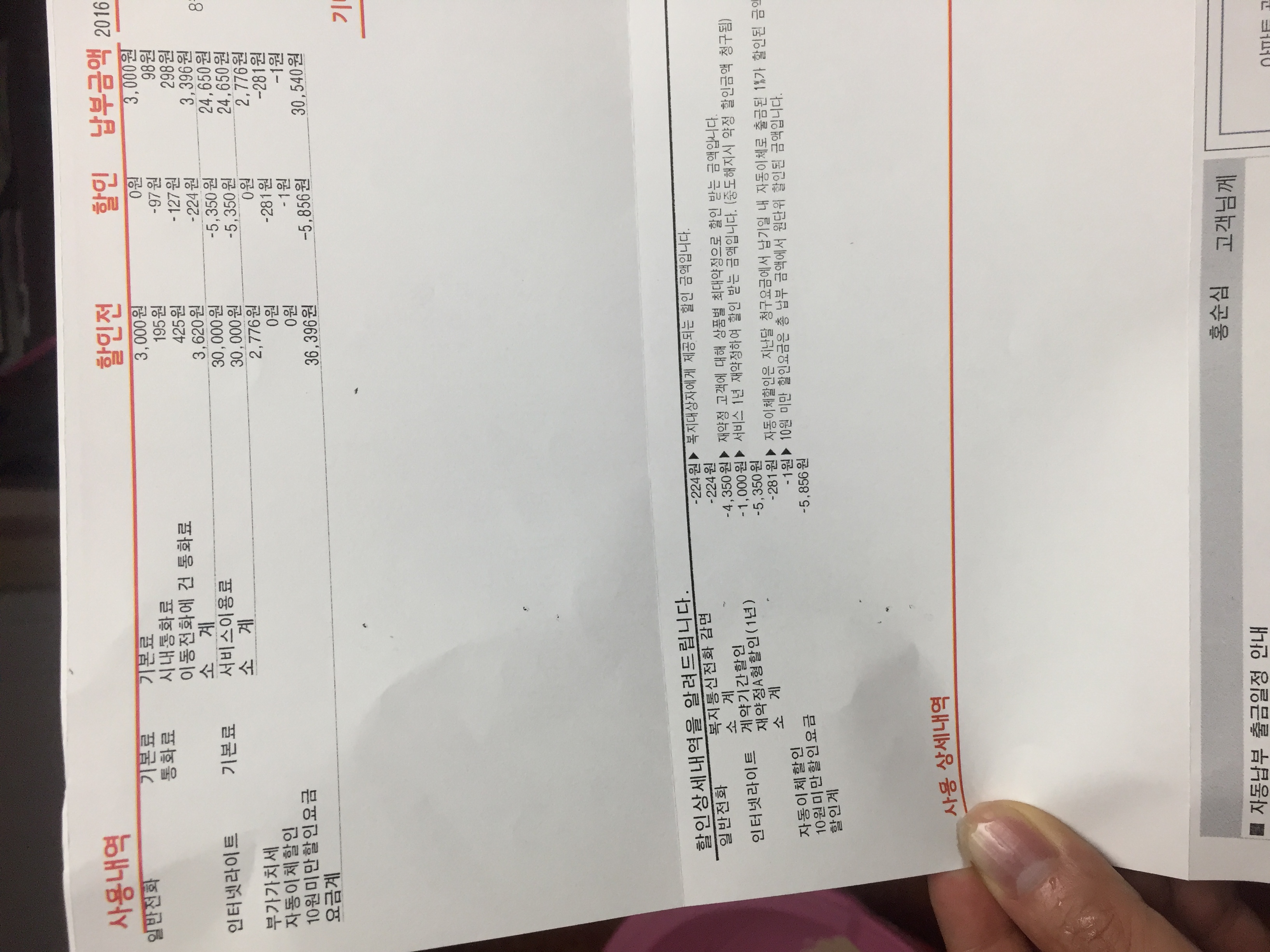 답변2) 이 역시 영수증을 확인해보니 현재 30,000원에 복지대상이 아니라, 재약정 및 1년 연장에 관해 약 오천원정도 할인된 금액에 이용중인 것 같습니다.