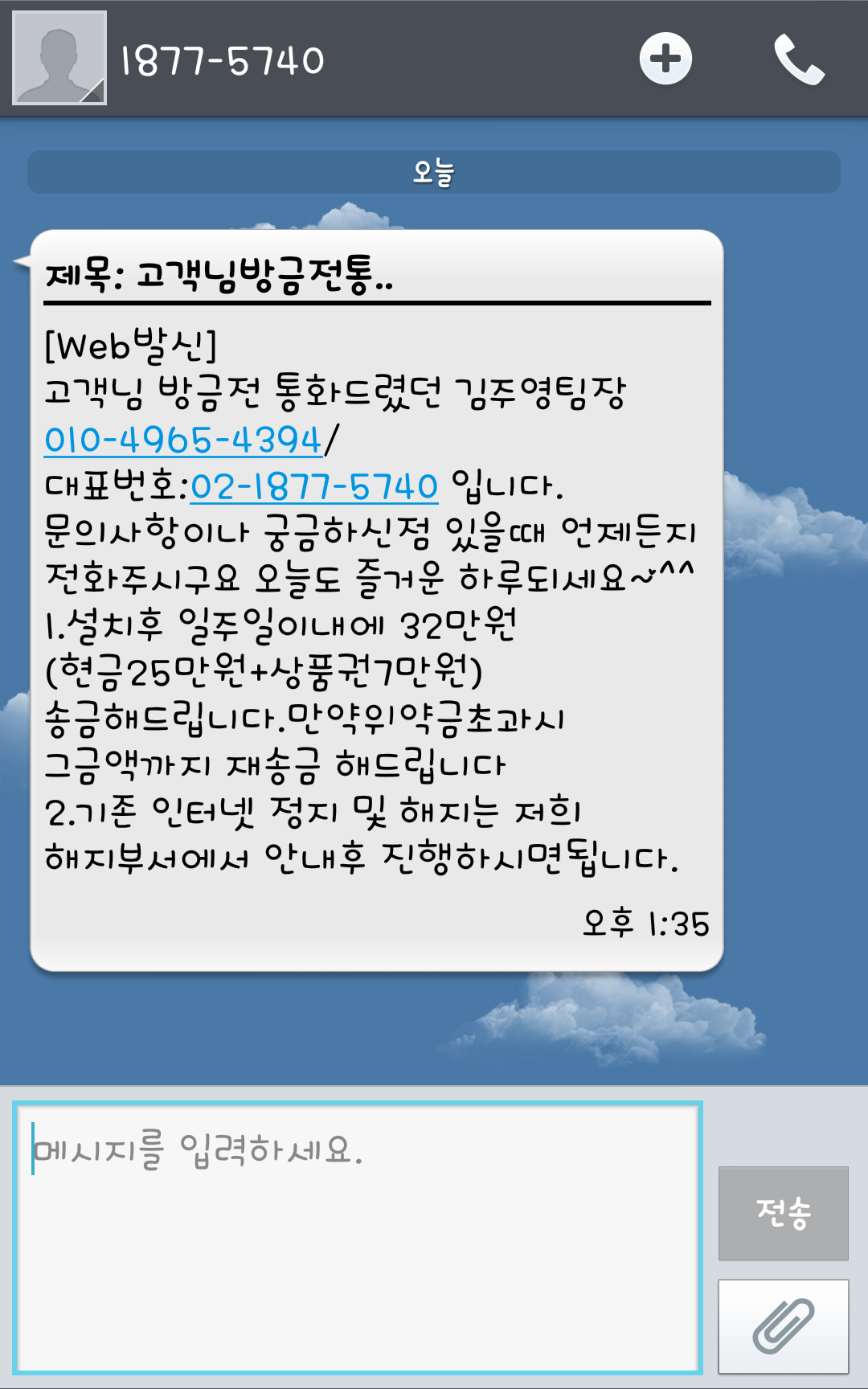 다음에 또 전화한다니까 위약금 먼저 입금 먼저 해주시라고 해봐야겠어요 ㅋㅋㅋㅋㅋ