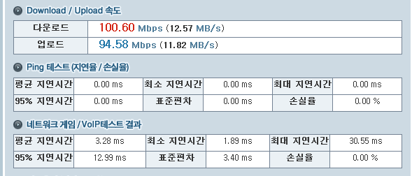 ※컴퓨터에 문제는 없습니다. 저 결과는 윈도우10 공장초기화 상태로 진행했습니다. 컴퓨터 문제인줄알고 갈아 엎었는데도 문제가 발생합니다. 인터넷 검사 도중에도 끊깁니다. 폰으로 찍은 영상도 있구요.