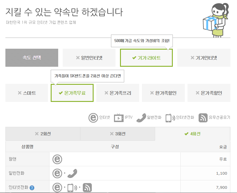 인터넷을 무료로 이용하실 수 있는 온가족무료 결합상품은