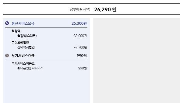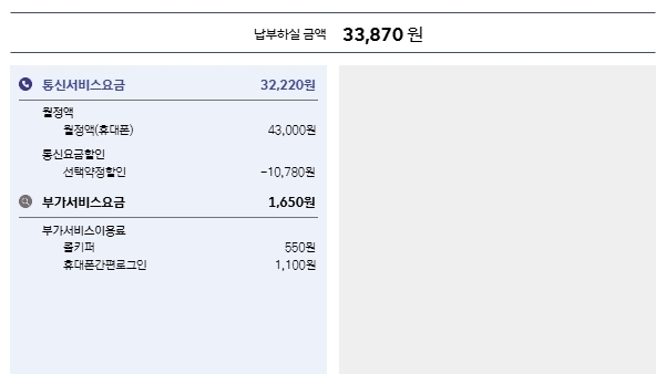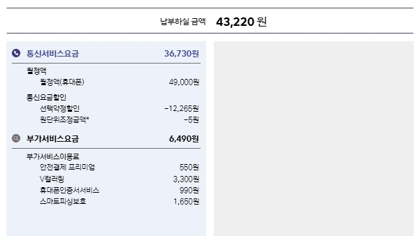 2. 본인 휴대전화요금 (데이터 평균 50기가 사용)