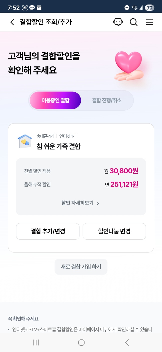 2. 이 인터넷에 가족4명이 결합으로 묶여있는데 IPTV와 스마트홈 해지하면 결합할인이 얼마나 줄어들까요