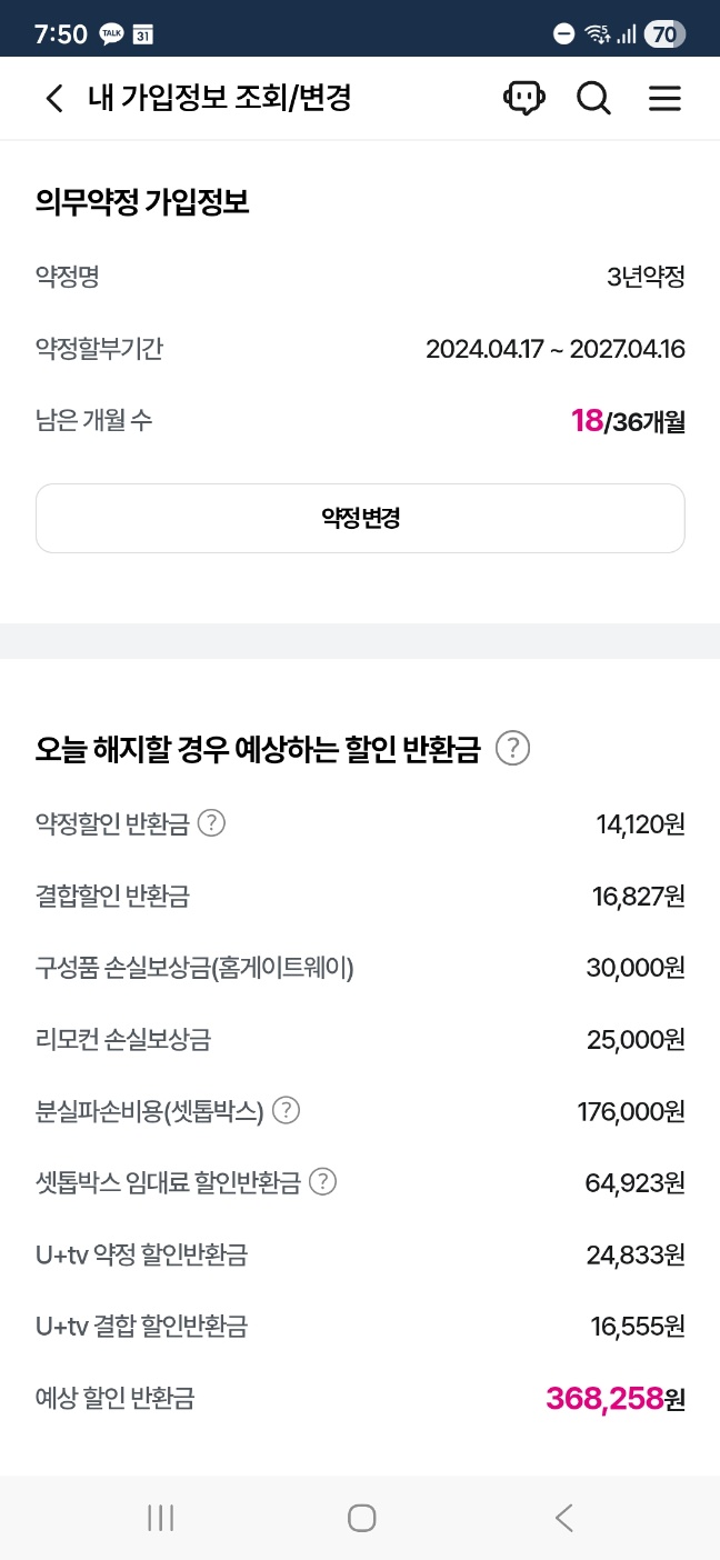 3. 인터넷+IPTV+스마트홈 3개 합쳐서 41500원 나오는데 안쓰는걸 해지하는게 나은지, 위약금 내느니 그냥 유지하는게 나은지 궁금합니다