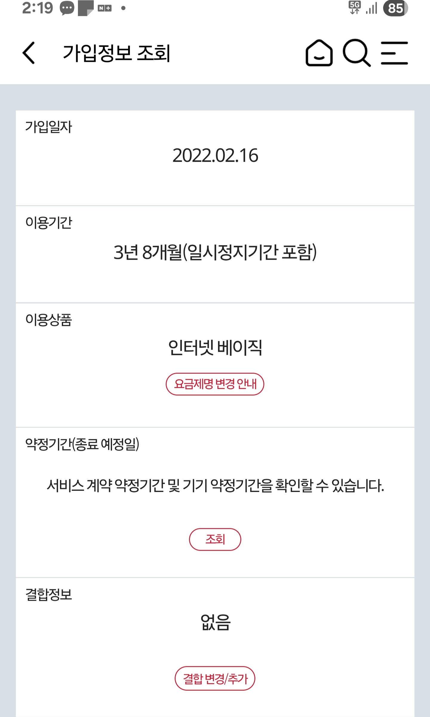 만약 1가지라도 있으면 새로 가입할 인터넷과 결합해서 요금 할인을 받을 수 있어서요 ㅎㅎ