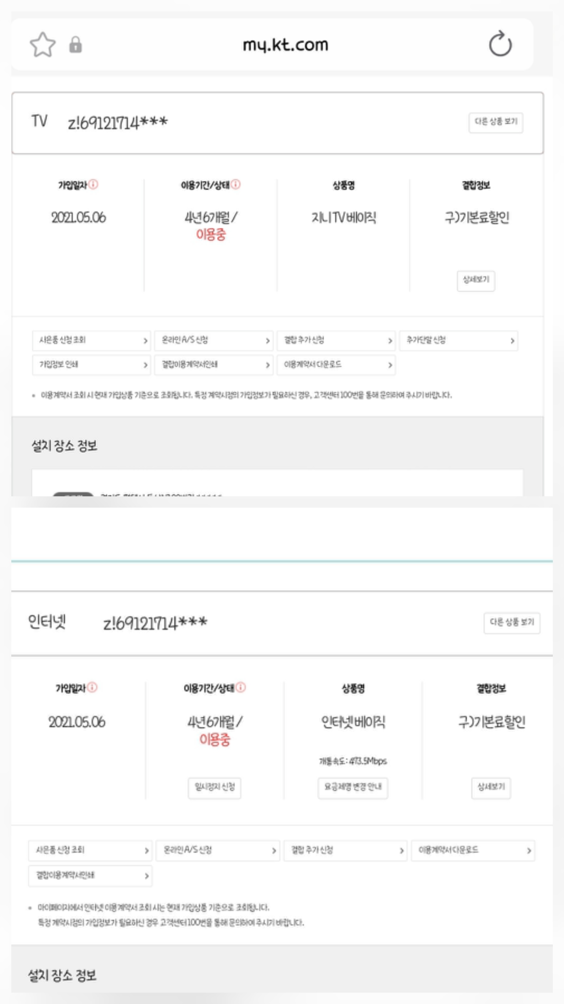아쉽게도 백메가 통해서는 KT인터넷 재약정이 불가하기에