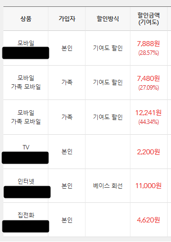 가입상품: 총액 결합 할인
