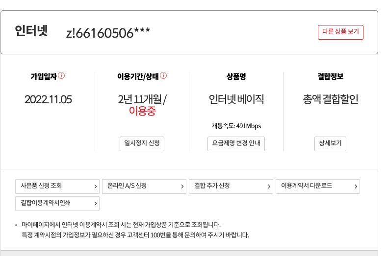 이제 사용하시던 KT 인터넷 약정이 만료되어