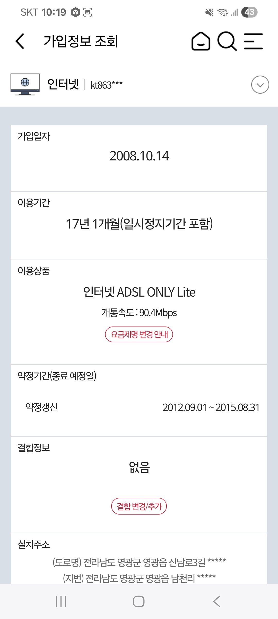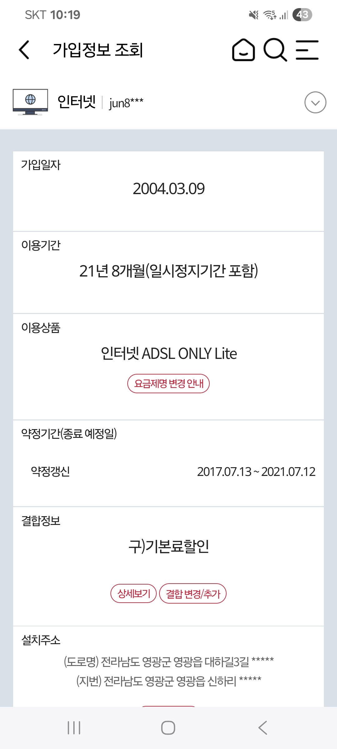 정확한 가입 연수 확인은 어렵지만, 인터넷 요금에서 적용받을 수 있는 할인 요금은 계산해 볼 수 있답니다.