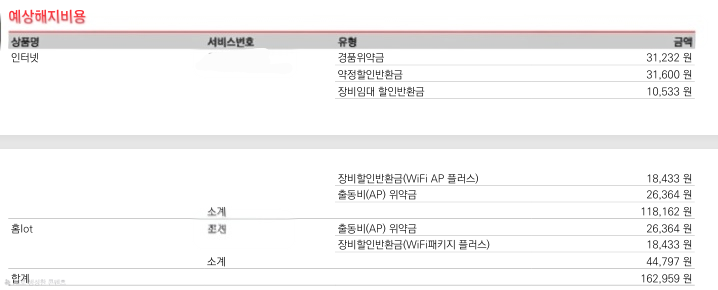 위약금도 대략 확인했습니다