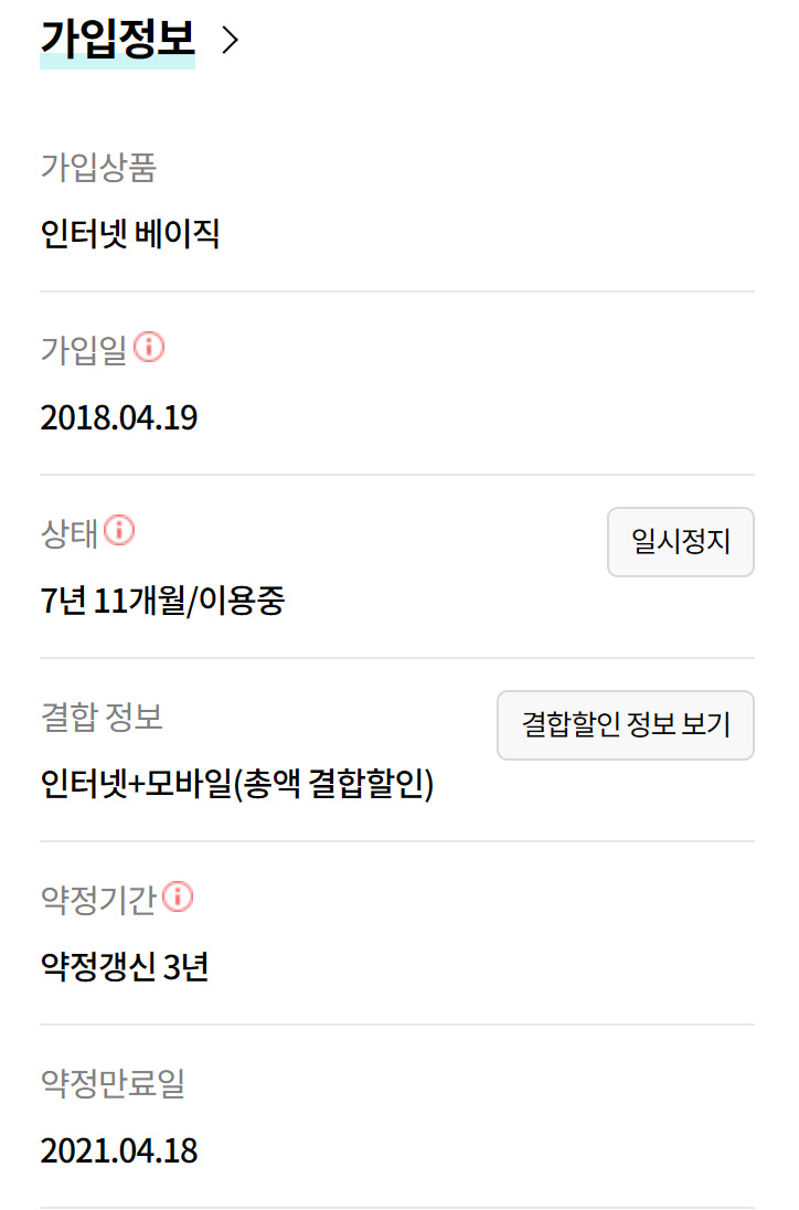 인터넷 약정만료 문의드립니다