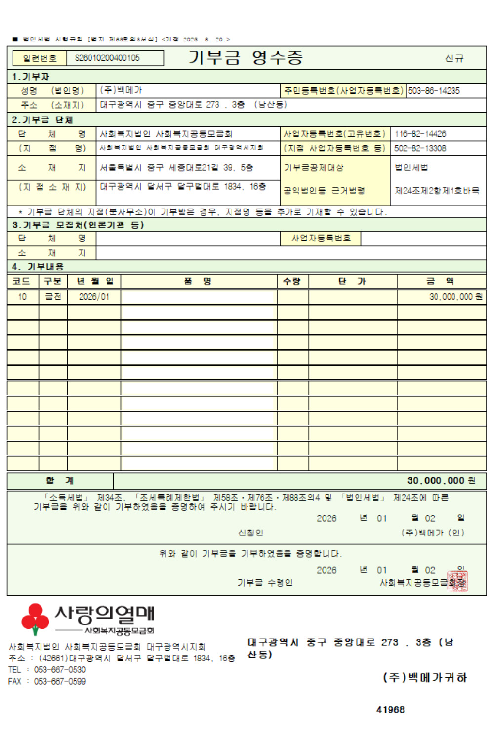 이러한 이해 충돌을 피하기 위해 : 백메가는 몇 년간 기부 사실을 대외적으로 알리지 않고, 회사 임원들의 자발적 급여 삭감으로 기부금을 마련해 왔습니다. 하지만 기부 문화를 널리 알리는 것이 기부 이상으로 중요하다 믿습니다. 무엇보다 많은 이들의 도움으로 백메가가 존재한다는 사실에 대해, 임직원 모두의 공감대가 형성되어야 합니다.